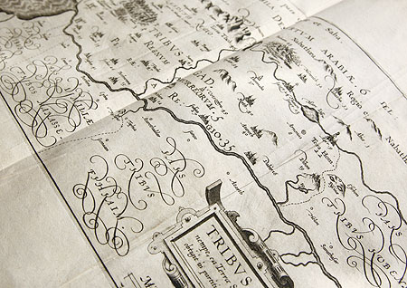 aus: Theatrum Terrae Sanctae et Biblicarum Historiarum : cum tabulis geographicis Ersch. 1589. Dargestellt wird ein Küstenstrich des Heiligen Landes