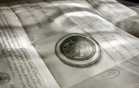Auschnitt eines Faksimile der Gründungsurkunde des Bistums Bamberg aus dem Jahr 1007